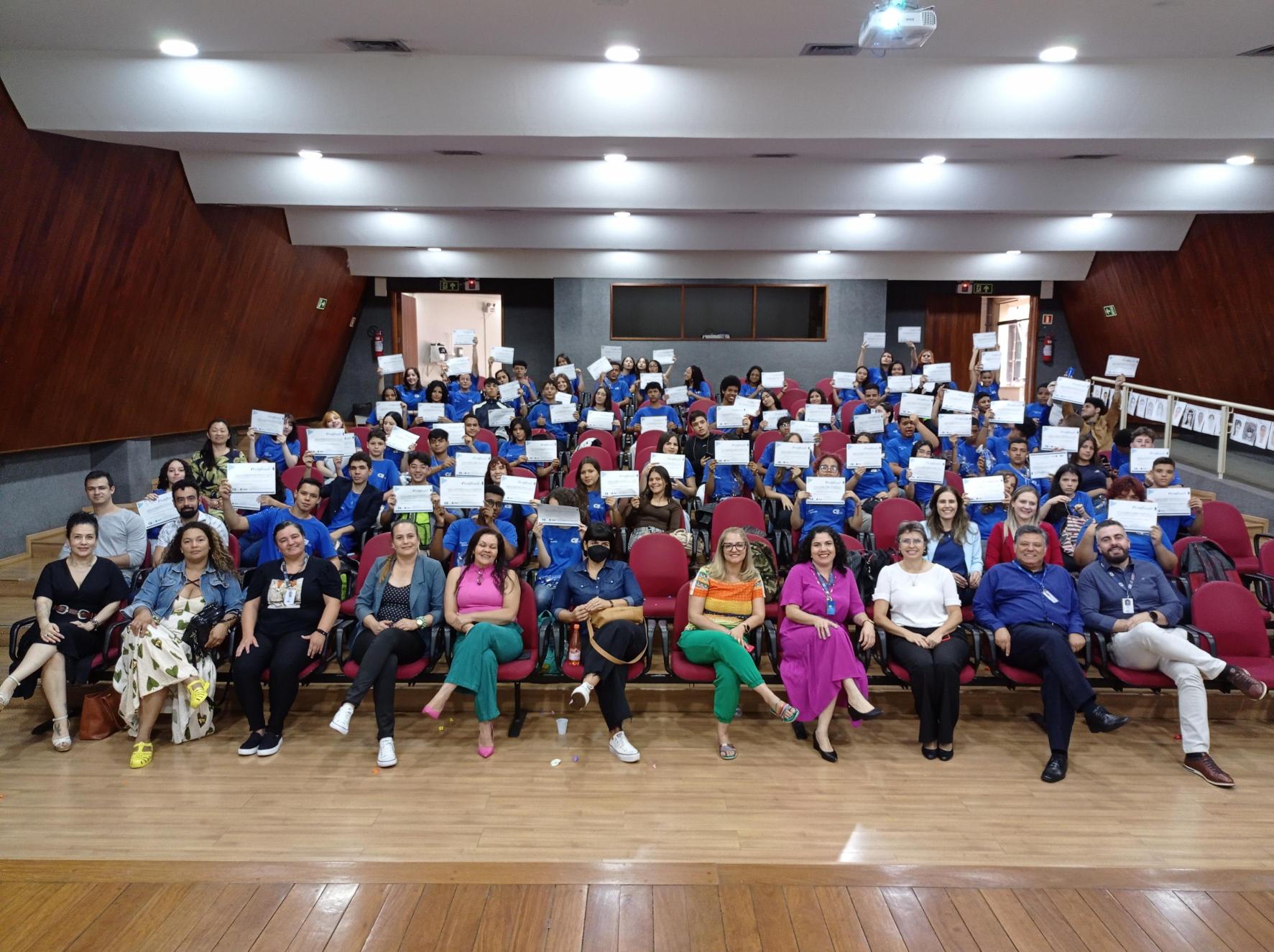 Ao todo, 86 jovens, entre 14 e 17 anos, concluíram o projeto e receberam sua certificação no encontro, realizado no Auditório Hélio Moreira, em Maringá.