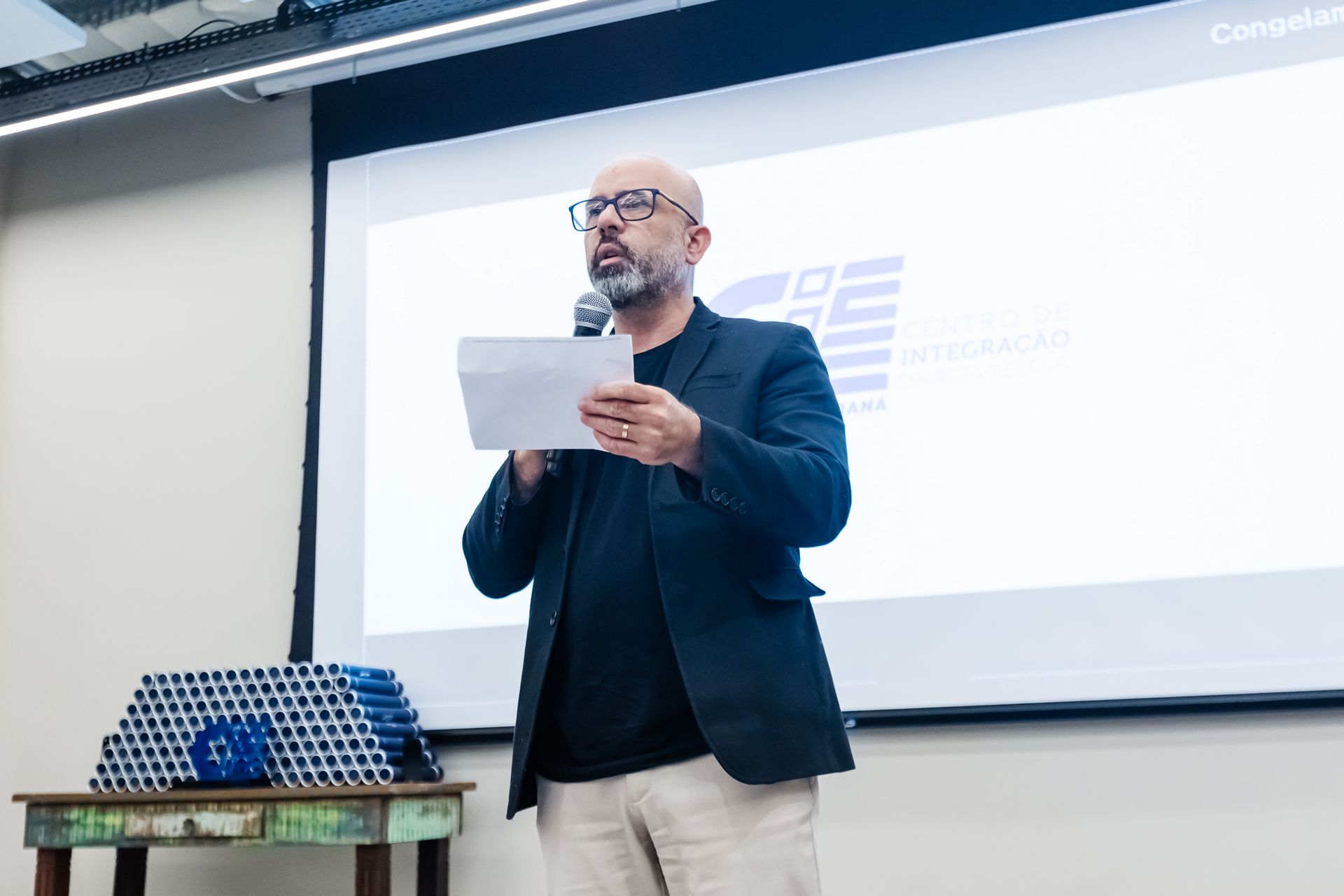 Presidente do CIEE/PR, Antoninho Caron dando boas-vindas aos formandos e presentes.