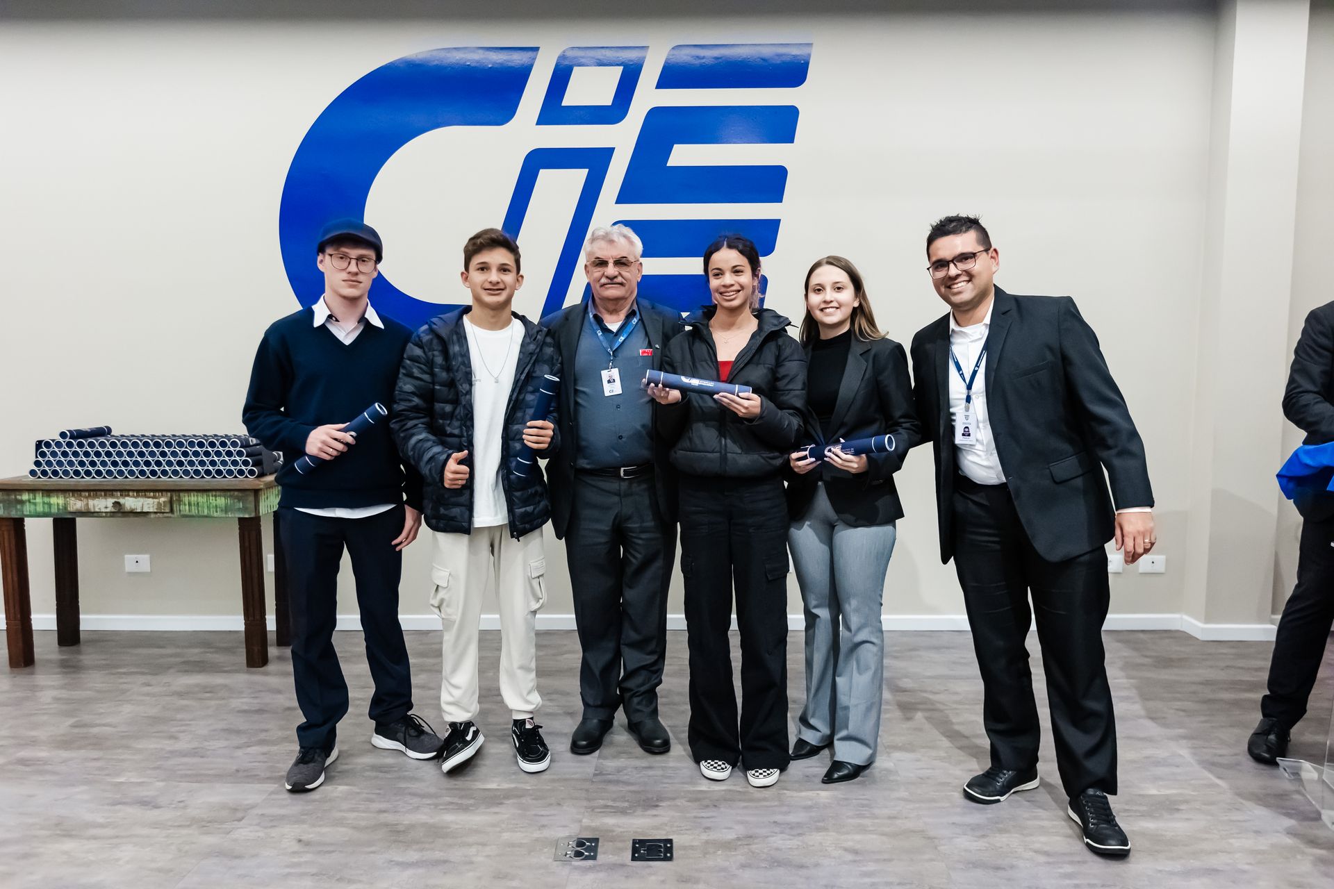 Formandos recebendo o certificado de conclusão do Programa de Aprendizagem.